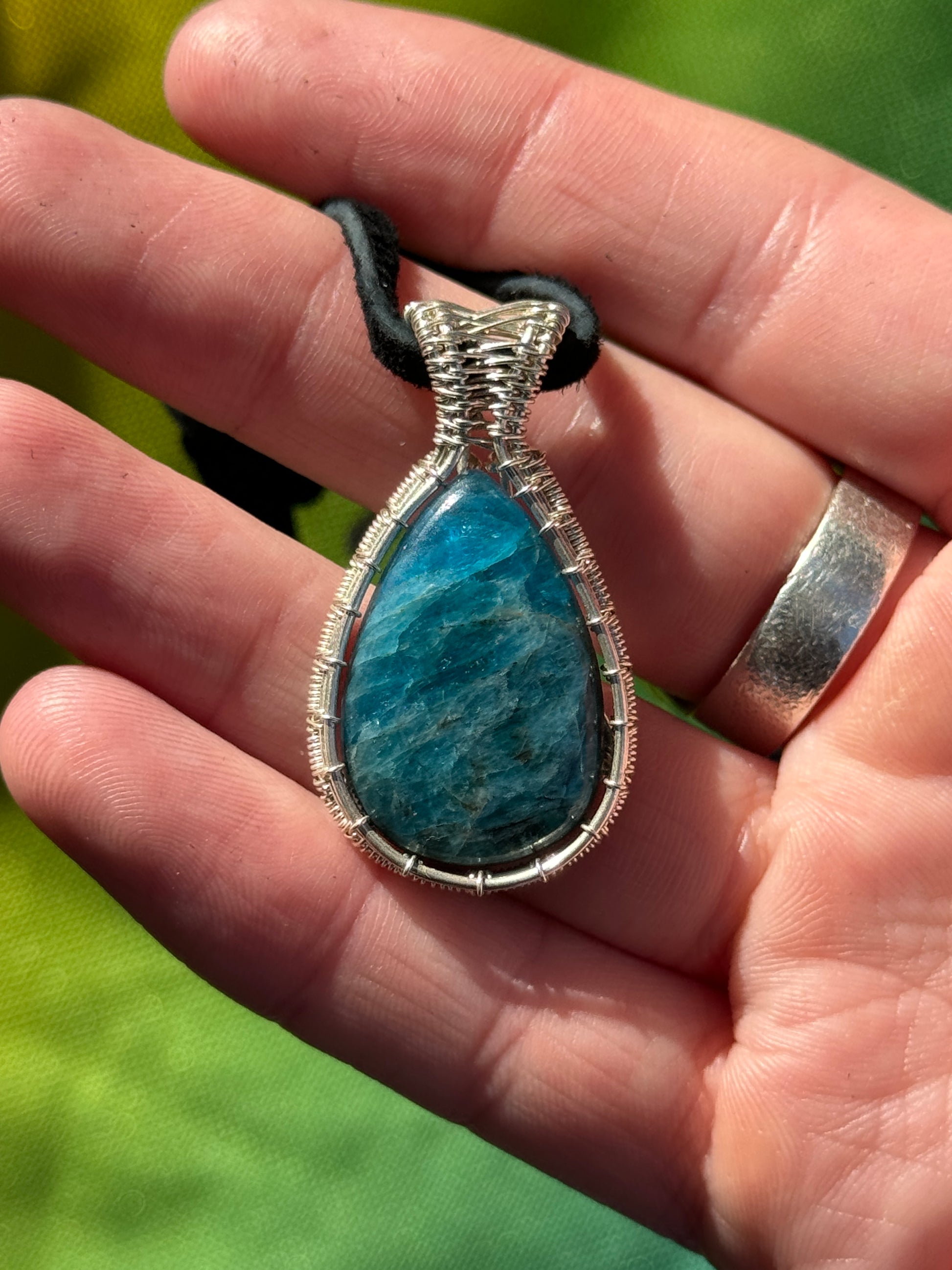 Apatite wrapped in sterling silver
