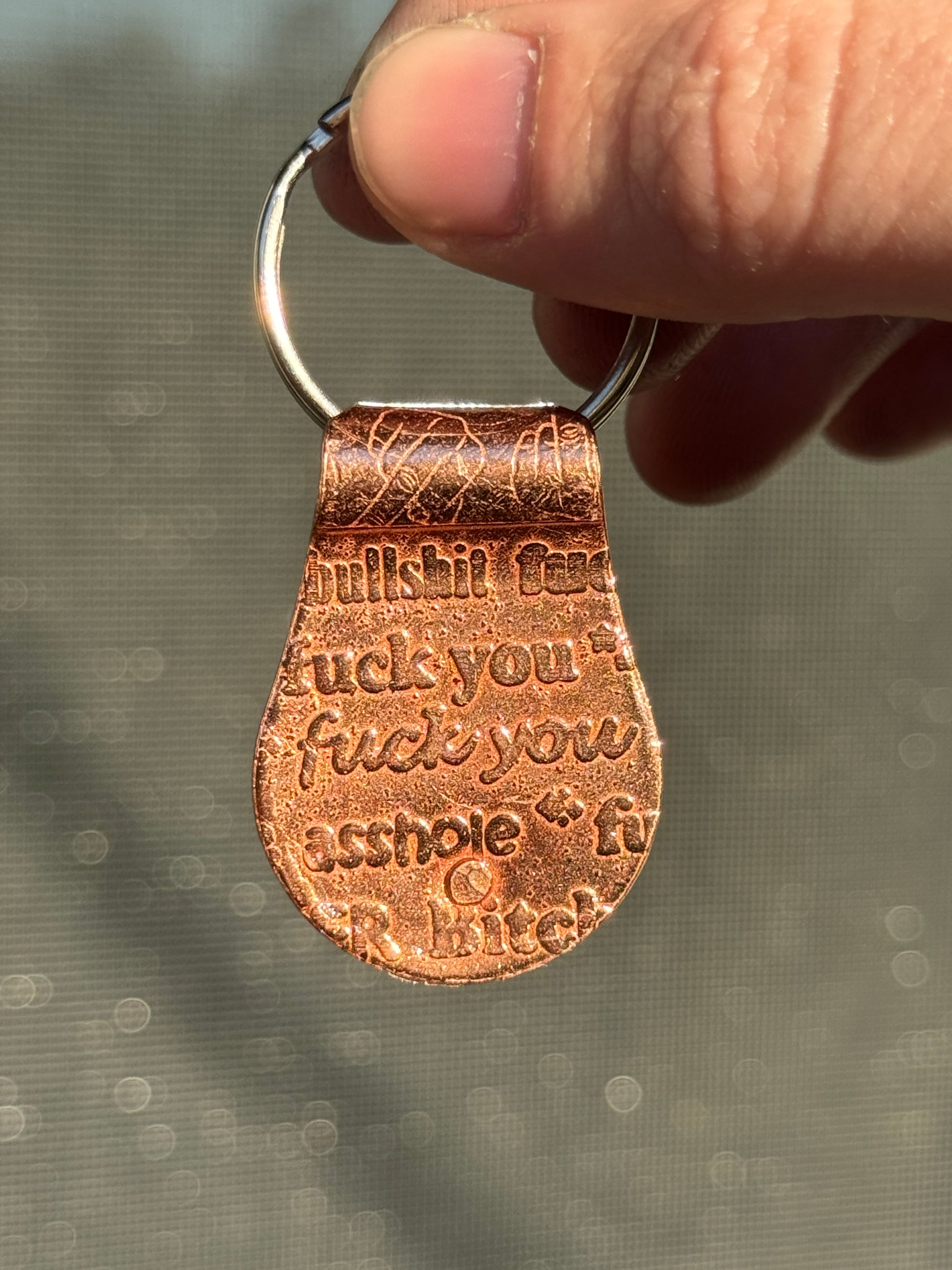 Say it like you mean it with the Explicitly Honest Keychain. This double-sided statement piece features bold middle fingers on one side, declaring "No F*cks Given," while the other side spells it out with unapologetic phrases. Handcrafted from copper, this keychain isn’t just an accessory—it’s a mood.