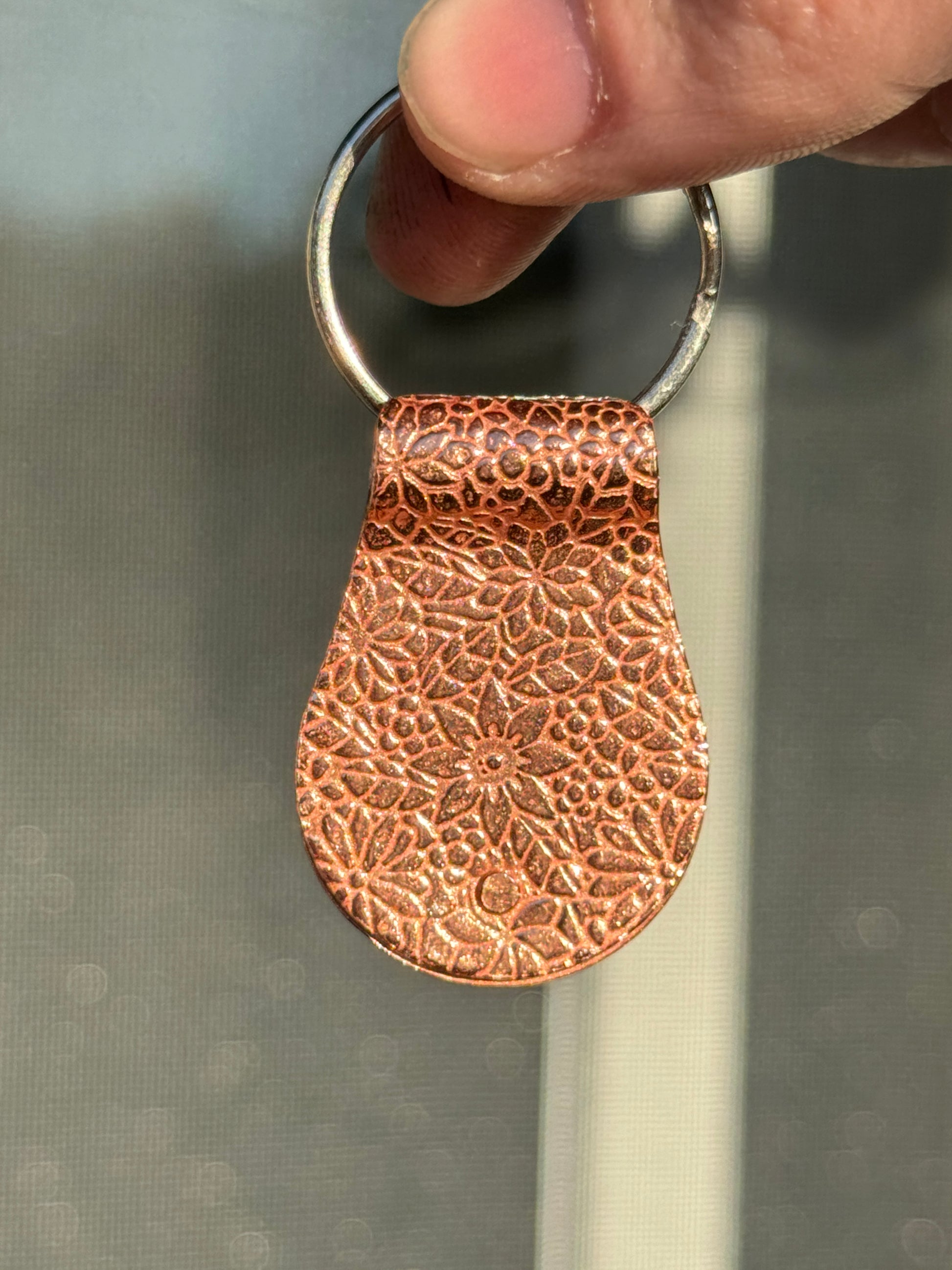 Add a touch of elegance to your everyday with the Floral Radiance Keychain. Handcrafted from copper, its intricate floral design captures the beauty and brilliance of blooming flowers, radiating warmth and charm in every detail.