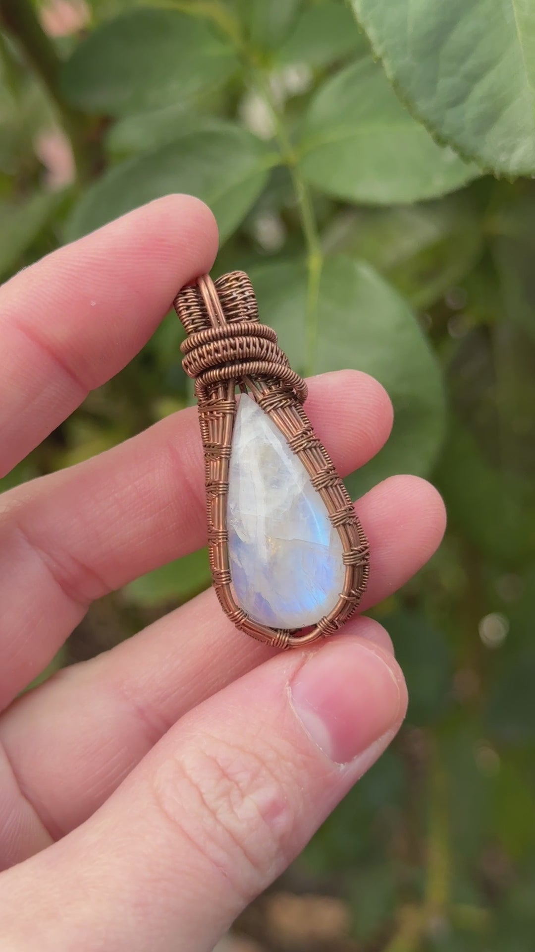Moonstone is known for its ethereal play of light, often called the "adularescence." As it catches the light, it shimmers with soft hues, creating a mesmerizing spectacle that's sure to turn heads and spark conversations. The copper wrapping adds a touch of rustic charm, accentuating the stone's natural beauty and making each pendant one-of-a-kind.